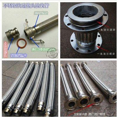 不銹鋼耐壓金屬軟管是由不銹鋼波紋管外編一層或多層鋼絲或鋼帶網(wǎng)套,兩端以接頭或法蘭,用于輸送各種介質(zhì)的柔性元件。其特點(diǎn)是:耐腐蝕、耐高溫、耐低溫(-196℃~+420℃)、重量輕、體積小、柔軟性好。廣泛用于航空、航天、石油、化工、冶金、電力、造紙、木材、紡織、建筑、醫(yī)藥、食品、煙草、交通等行業(yè)。